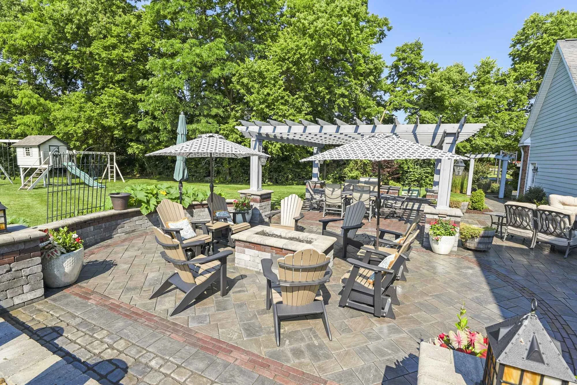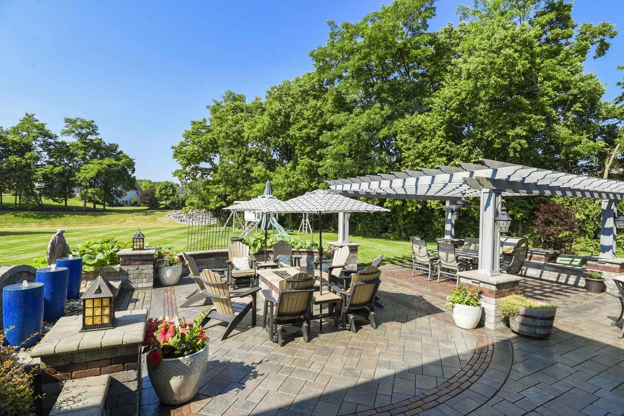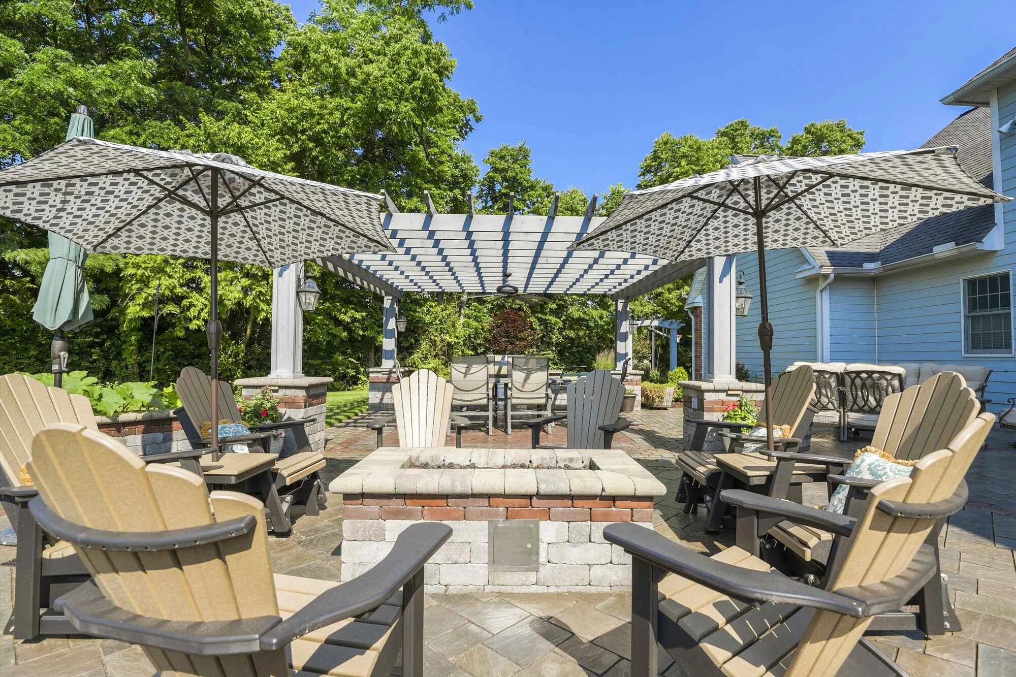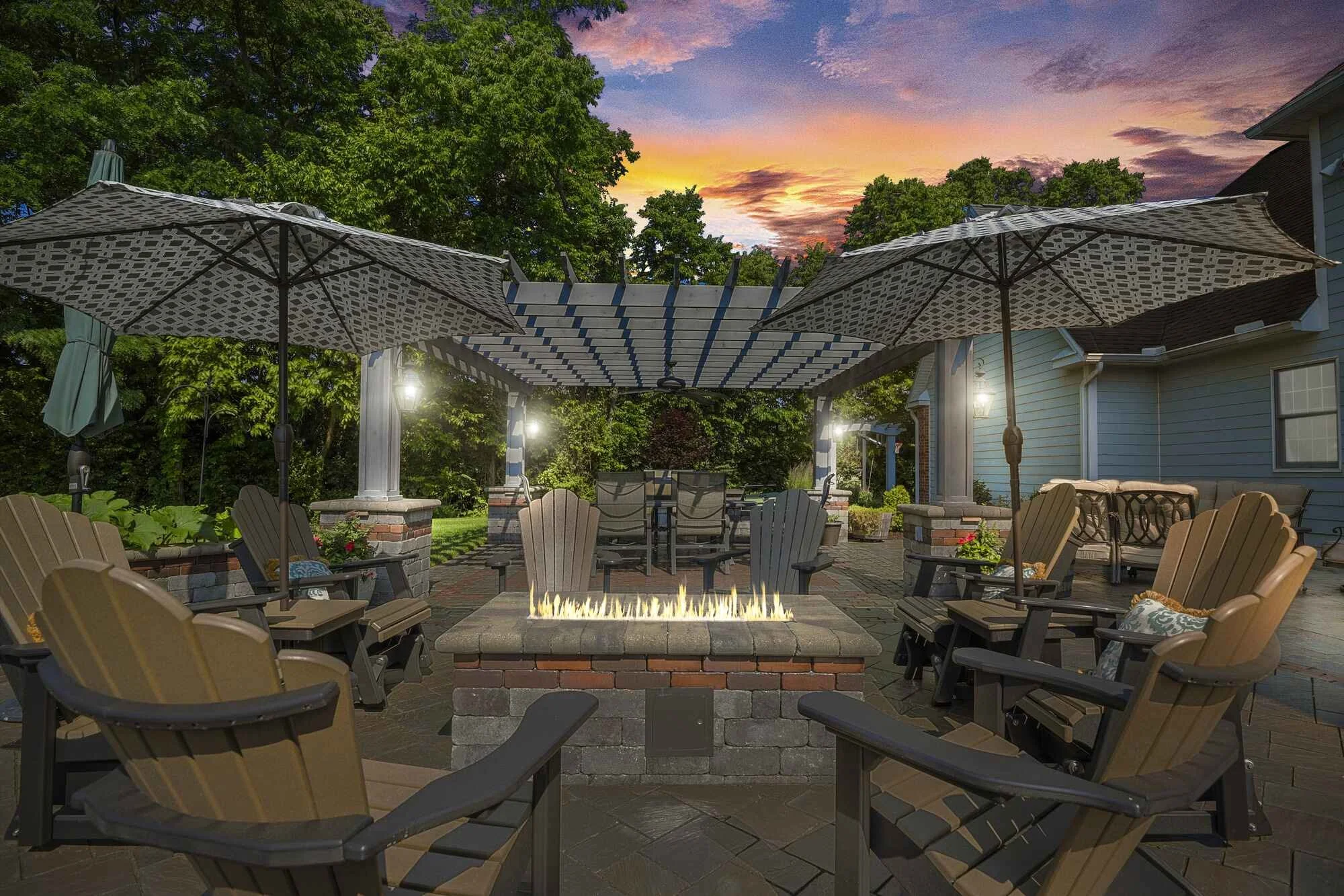 The project focus was in the backyard, where we crafted an expansive paver patio, complemented by a pergola for shade and various seating areas, creating an ideal space for outdoor entertaining. A cozy modern fire pit was added to serve as a focal point for social gatherings. The lawn was expertly graded and seeded to ensure optimal drainage and a vibrant, green appearance. Premium mulch was strategically placed to enhance texture and create low-maintenance zones around the paver elements and retaining wall. We designed and installed flower and plant beds along the newly constructed retaining wall, filling them with a mix of perennials and annuals to provide year-round visual interest. Edging was used to maintain clean lines and define the planting areas. The final outcome is a stunning and functional outdoor space that surpassed the homeowner’s expectations, showcasing our careful planning and meticulous execution. The residence now features a striking landscape that enhances the home's value and livability, reflecting the innovative and thorough approach of our team.