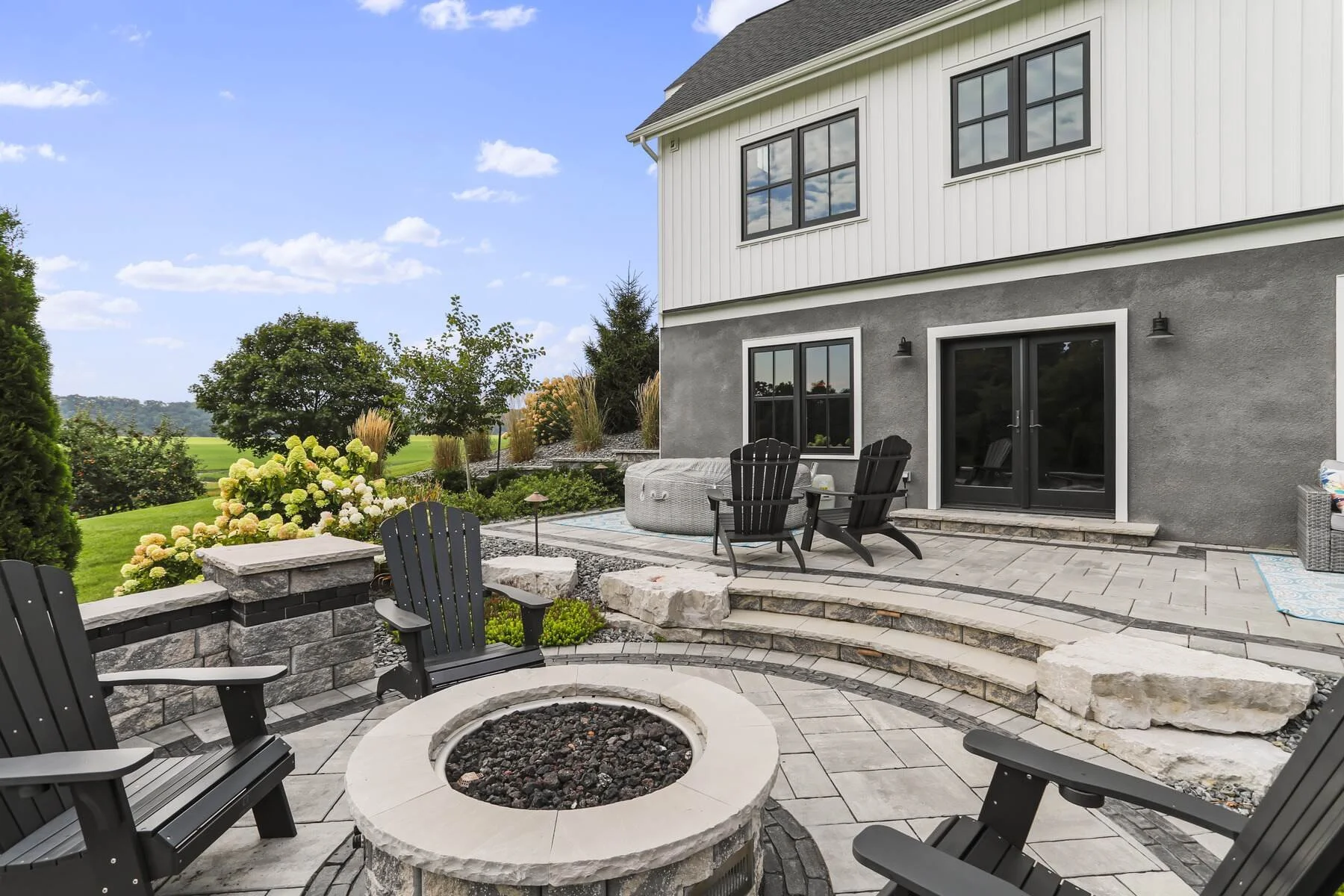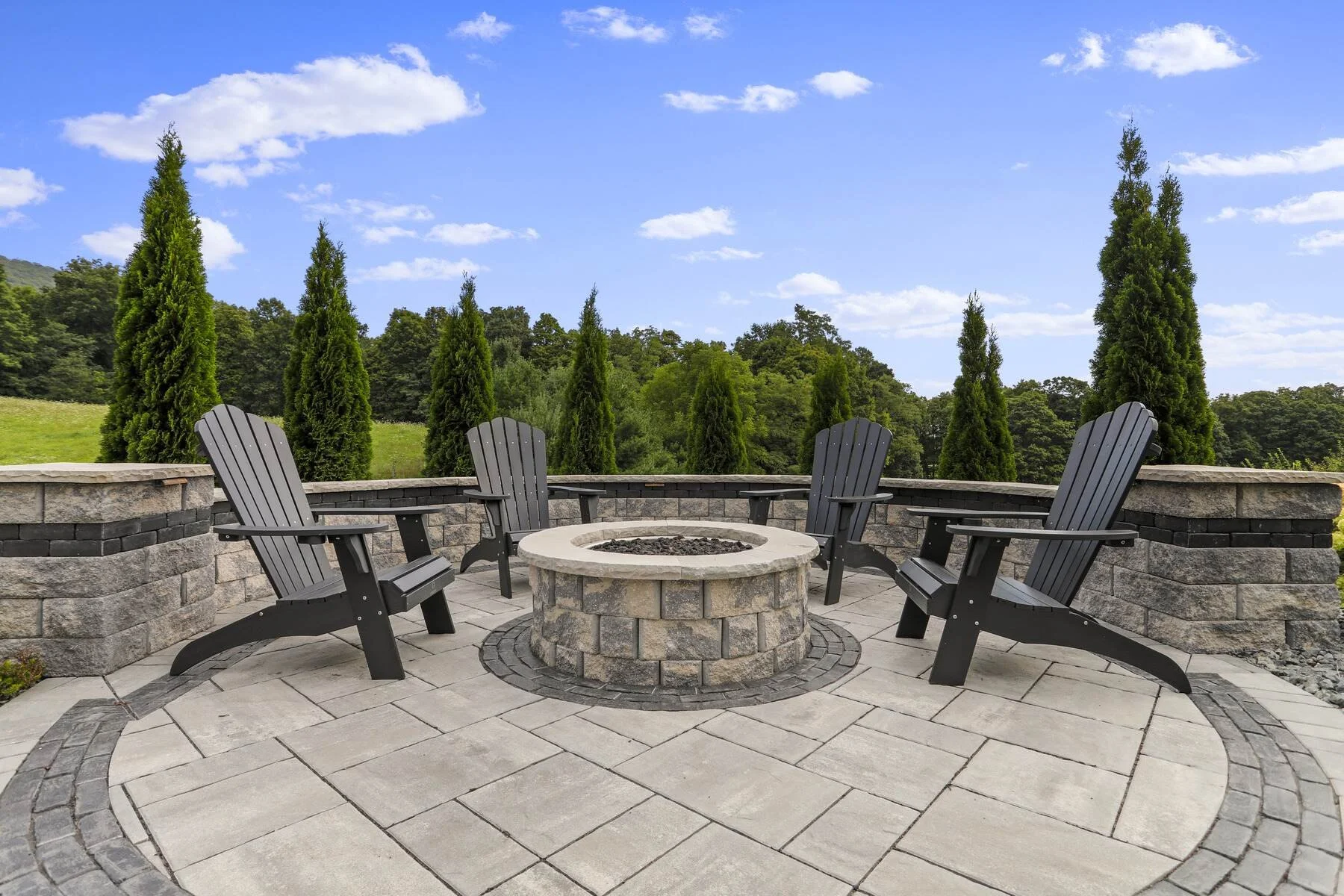 For this project, the goal was to craft an inviting outdoor space that could be enjoyed year-round. We started with a paver entryway and natural stone walkways, creating elegant pathways through the property. The central paver patio was designed to offer both open-air relaxation and intimate gatherings around the custom-built fire pit. Retaining walls were added to help shape the landscape, blending seamlessly with the vibrant plantings around the patio. To enhance the calming atmosphere, a water feature was installed as a focal point, providing soothing sounds of flowing water. The final design strikes a perfect balance between beauty and functionality, offering the homeowners a peaceful and dynamic outdoor living space where fire and water create a mesmerizing backdrop to any occasion.