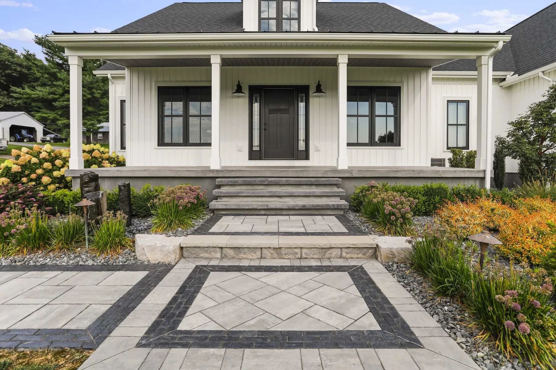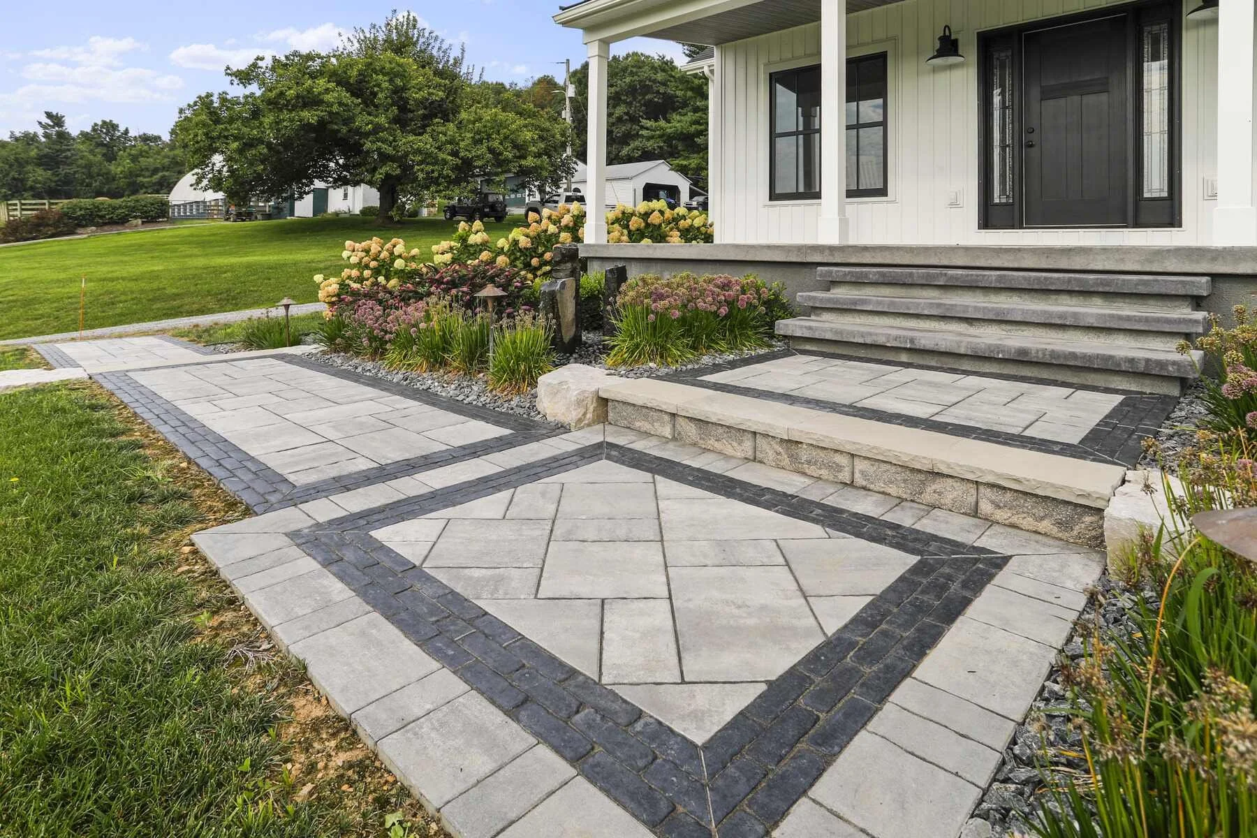 PAVER ENTRYWAY & PATIO | NATURAL STONE WALKWAYS | PLANTINGS | FIRE PIT | WATER FEATURE