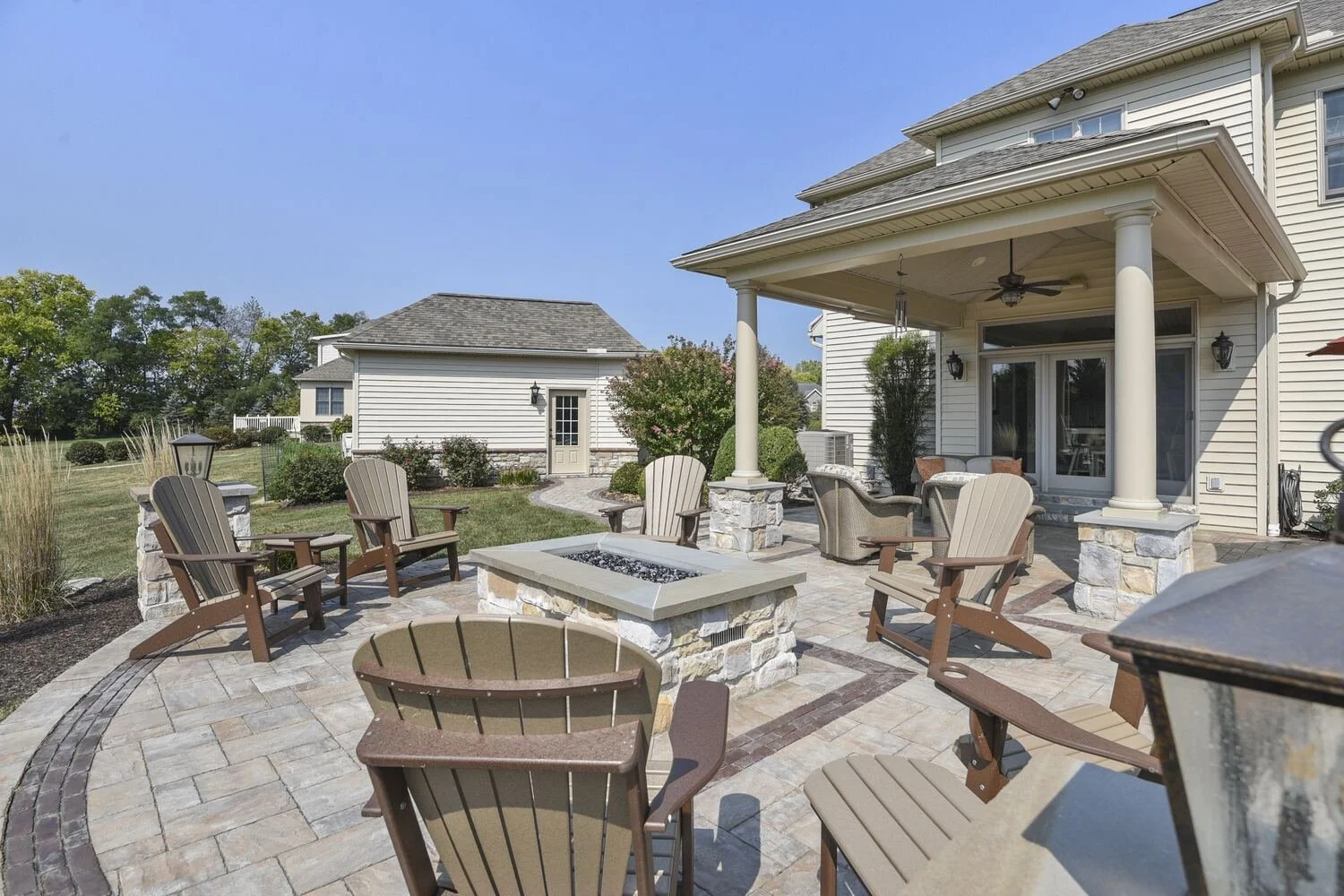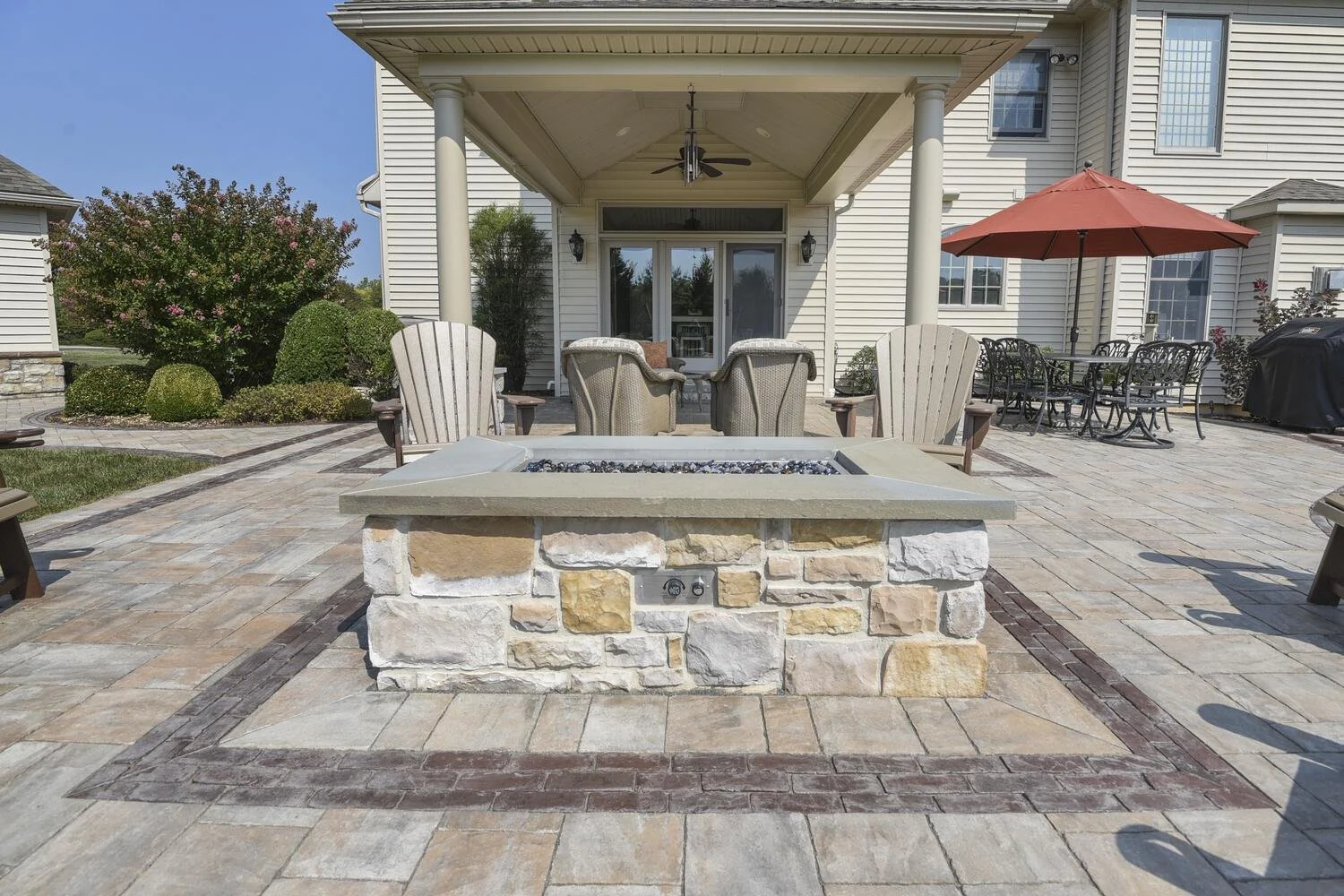 Paver Patio | PAVER WALKWAYS | OUTDOOR FIRE PIT | SHADE FEATURE